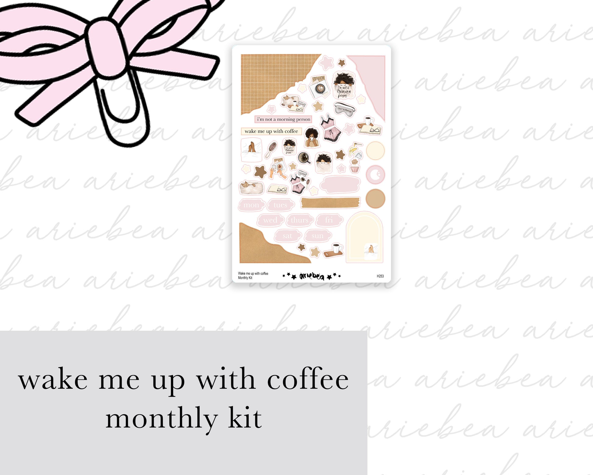 The Wake Me Up For Coffee collection is a set of journaling stickers to be used in all planners including Hobonichi, Stalogy and bullet journals. Can be used in monthly, weekly and daily spreads.